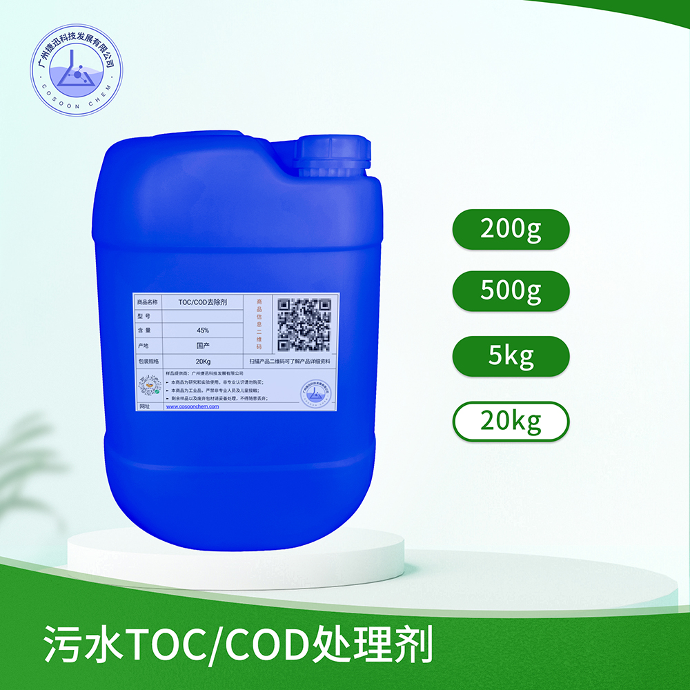 产品集合了高级氧化、反应沉降、吸附等处理技术,含有高价铁离子能将污水中的 TOC/COD从水体中快速氧化分解,尤其适用于废水经过生化处理后仍不能达标排放的企业,是 TOC/COD超标的首选废水处理药剂。